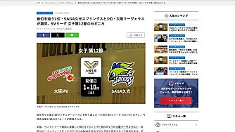 2位・SAGA久光スプリングスと3位・大阪マーヴェラスの上位対決は1勝1敗。SVリーグ 女子第12節の結果